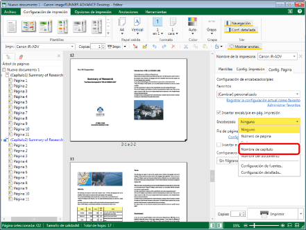 Configúrelo para insertar un nombre de capítulo en el encabezado de la página para imprimir.