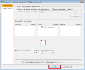 Haga clic en [Configuración detallada para encabezado/pie].