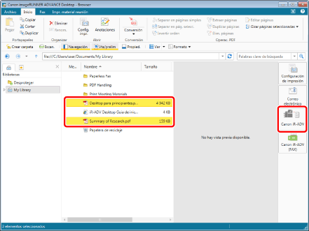 Seleccione el documento que desea imprimir y haga clic en el botón de salida de impresora.