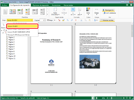 Si se ha seleccionado [Comprobar la vista preliminar con Editor antes de imprimir] en los ajustes del botón de salida de la impresora, se inicia Desktop Editor.