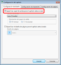Seleccione la casilla de verificación [Especificar papel de salida para el capítulo seleccionado].