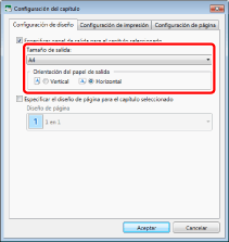 Si se configura la impresión a 1 cara para el documento completo pero no se han configurado los siguientes ajustes de papel e impresión, puede configurar el tamaño del papel de salida distinto sólo para el capítulo especificado.