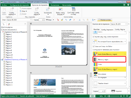 Seleccione [Blanco y negro] en [Configuración detallada para impresión] en la pestaña [Config. Impresión] de la Ventana Detalles.
