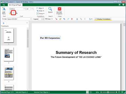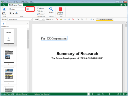 Fonts cannot be specified with the tool button displayed in the toolbar for the Annotations Mode.