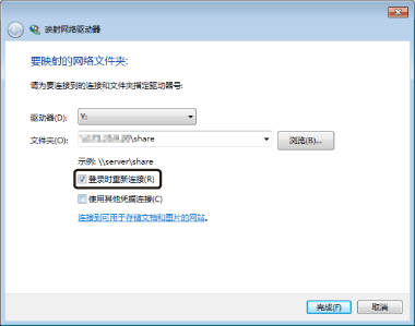 对于Windows 8.1/Windows 10,选中[登录时重新连接]复选框。