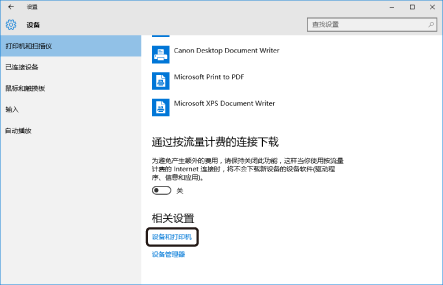 选择[打印机和扫描仪]菜单中的[设备和打印机]。