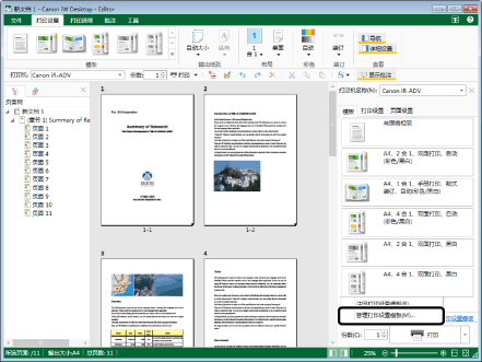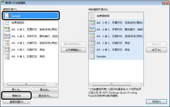[管理打印设置模板]对话框中[当前模板列表]中显示的前9个模板是可以在Quick Printing Tool 中指定的打印模板。