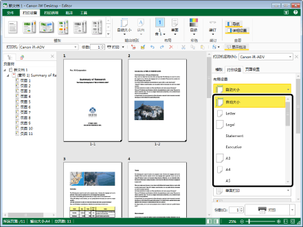 如果输出纸张大小设置选择了 [自动大小] ,会根据每个原稿页面的大小自动选择每个页面的输出纸张大小。