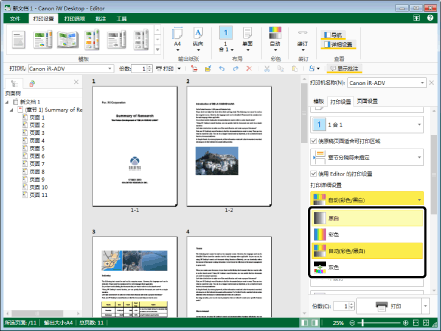 如果 [打印机] 中选择的 Canon 打印机不支持彩色打印,则无法指定色彩模式。