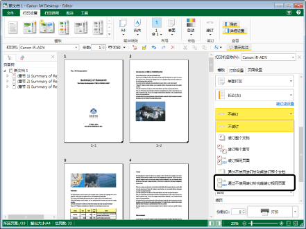 只有当选择了Canon打印机以及详情窗口、功能区命令或工具按钮的[打印设置]选项卡上的[使用 Editor 的打印设置]复选框时,才可使用此功能。