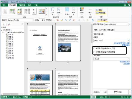 对于打印页面和原稿页面来说,页眉/页脚过程相同。