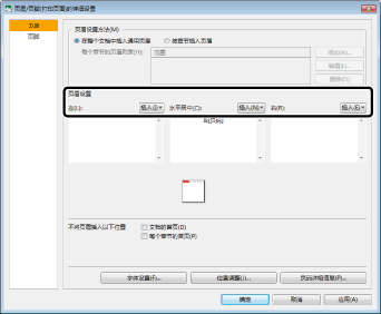 有关显示[页眉/页脚(打印页面)的详细设置]/[页眉/页脚(原稿页面)的详细设置]对话框的详细信息,请参阅下列内容。
