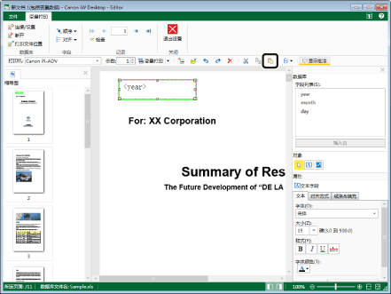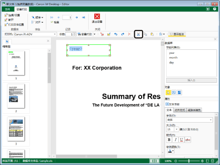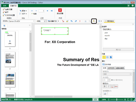 如果想在页面上选择所有变量字段,在保持工作窗口工作的情况下,在不带变量字段的工作窗口区域执行以下任一操作。