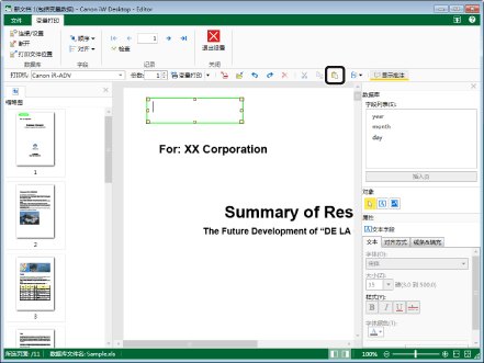 剪切页面区域外的变量字段并进行粘贴时,会粘贴至粘贴页面的左上方。