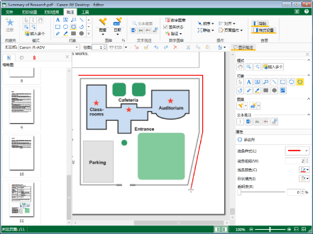 如果在[线条样式]中选择了[云(小)]或[云(大)],会在移动顶点时以实线显示批注框架。