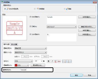 如果没有在[图章名称]中输入名称,将从[文本顶端]/[文本底端]中输入的文本中自动设置一个名称。