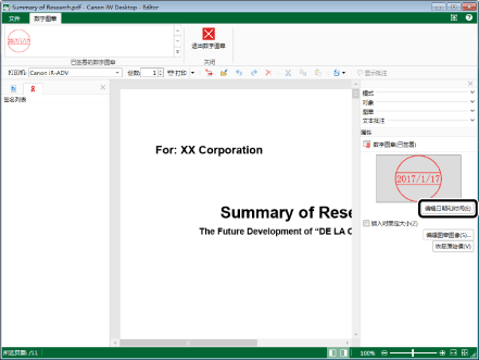对于不包含日期的数字图章,无法单击[编辑日期和时间]。有关为数字图章添加日期的信息,请参阅下列内容。