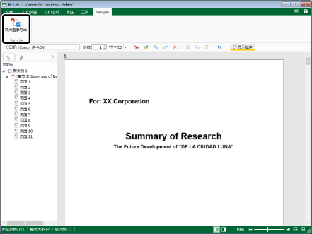 以 PDF 格式导出时,Desktop Editor 中配置的布局设置和两面打印/手册的空白侧(如[输出大小]、[输出纸张方向]、[页面布局] 和 [放大/缩小原稿页面]) 会应用到 PDF 文档。如果设置为打印以下内容,它们也会反映在 PDF 文档中。