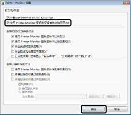 确认已选中 [使用 Printer Monitor 图标监视设备状态和显示] 复选框,然后单击 [确定]。