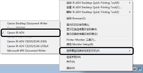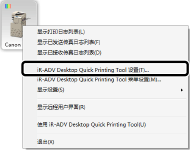 右键单击注册了监视设备的 Quick Printing Tool,然后选择 [iR-ADV Desktop Quick Printing Tool 设置]。