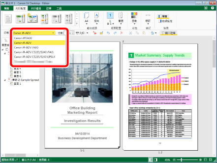 在 Desktop Editor 中預覽列印結果,並且進行列印設定。您可在實際列印前查看列印結果。