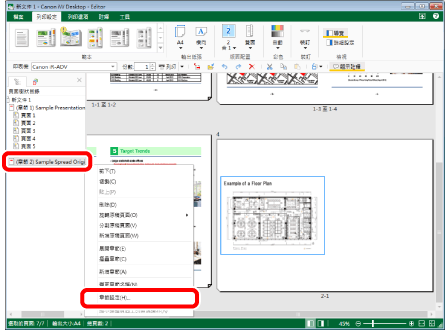 在 頁面樹狀目錄 中,選取「(章節 2) Sample Spread Original」,然後以滑鼠右鍵按一下並選取「章節設定」。