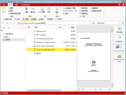 Desktop Browser 是一个用于由 Desktop 实现的文档管理的中心应用程序。Desktop Browser 管理使用库从本地计算机、网络驱动器或外部设备(如 imageRUNNER ADVANCE)导入的文档。