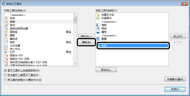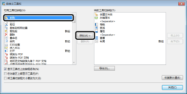 如果在选择了[当前工具栏按钮]中某个按钮后单击了[添加],则在[可用工具栏按钮]中选择的按钮会添加至所选按钮之下。
