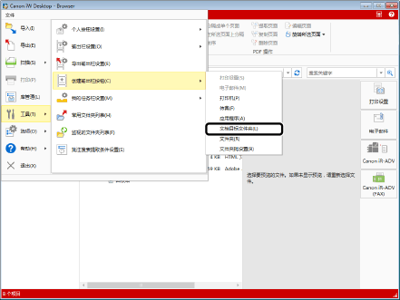 也可从 Desktop Editor 创建文档目标文件夹。要从 Desktop Editor 创建文档目标文件夹,选择 [文件] 菜单 > [设置/管理] > [创建文档目标文件夹]。