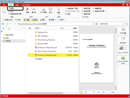 如选择了某个文档,可使用文档目标文件夹对其进行复制。