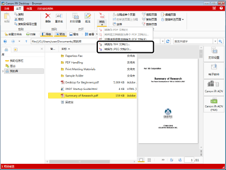 ,然后选择[转换为 TIFF 文档]或[转换为 JPEG 文档]。
