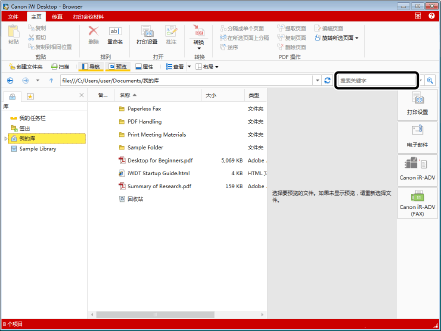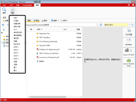 使用属性信息在简单搜索栏搜索文档时,可以使用“属性名称:搜索关键词”格式执行详细搜索。指定搜索目标的属性可加快搜索速度。(输入双字节或单字节冒号)