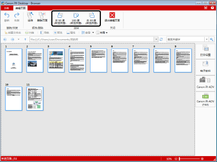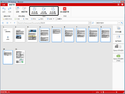 使用缩略图浏览时,按下键盘上的 [Shift] 或 [Ctrl] 键的同时,通过单击可以选择多个页面。