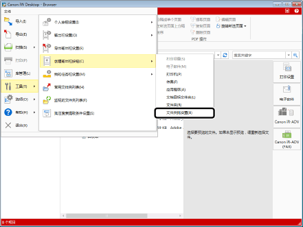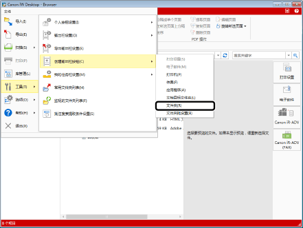 当通过选择 [文件夹批设置] 将目标任务栏输出按钮注册到输出栏时,无法配置详细设置。如果必需配置高级设置,请参阅下列内容。