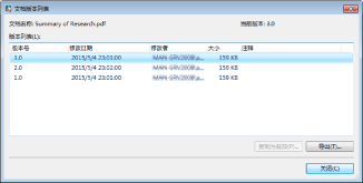 可以从 [文档版本列表] 对话框的 [版本列表] 中选择文档并单击 [导出] 以将所选择的文档版本保存在 Windows 文件夹中。有关详细信息,请参阅下列内容。