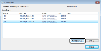 在显示已签出文档的版本列表并选择最新和第二新的版本号时,您无法使用 [复制为有效]。