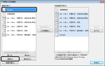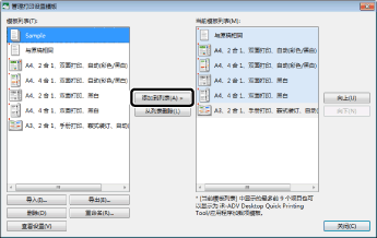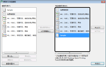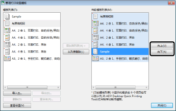 [管理打印设置模板]对话框中[当前模板列表]中显示的前9个模板是可以在Quick Printing Tool 中指定的打印模板。