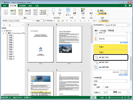 只有当选择了Canon打印机以及详情窗口、功能区命令或工具按钮的[打印设置]选项卡上的[使用 Editor 的打印设置]复选框时,才可使用此功能。
