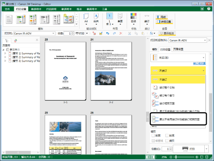 只有当选择了Canon打印机以及详情窗口、功能区命令或工具按钮的[打印设置]选项卡上的[使用 Editor 的打印设置]复选框时,才可使用此功能。