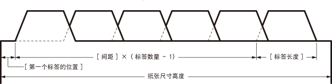根据在[第一个标签的位置]、[标签长度]和[间距]中指定的值确认没有超过纸张大小。如果在指定数值后点击[确定]时显示错误消息,则调整以下值,使总数低于[输出大小]中设定的纸张尺寸高度。