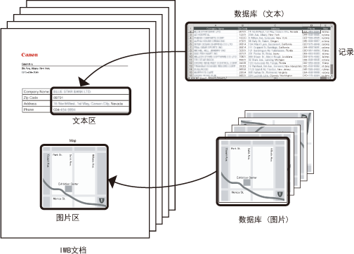 页面上的可替换区域称为“变量字段”,可以针对可替换文本(“文本字段”)或可替换图像(“图像字段”)进行设置。在Desktop Editor的变量打印设置模式中指定变量字段设置。要在文档中保存变量打印设置,将文档保存为IWB格式(*.iwb)。