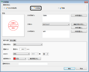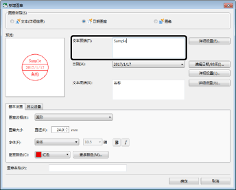 如果没有在[图章名称]中输入名称,将从[文本顶端]/[文本底端]中输入的文本中自动设置一个名称。