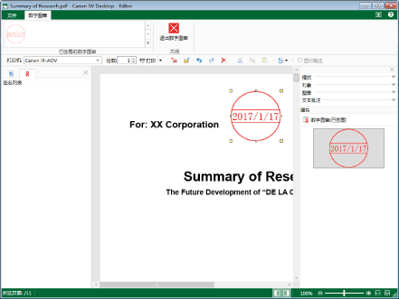 附加数字图章时,将更新在导航窗口中的[签名列表]选项卡上显示的内容。