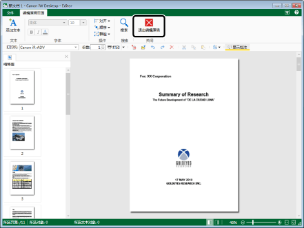 要保存用编辑原稿页面模式编辑的结果,需以IWB格式(*.iwb)或PDF格式(*.pdf)保存文档。