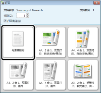 可能显示用来创建文档的应用程序的 [正在打印] 对话框或 [打印] 对话框。这种情况下,选择 Desktop Document Writer 作为输出打印机并进行打印。