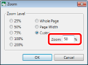 You can specify a magnification factor in units of 1%. If you enter a value greater than the upper limit (200%) or smaller than the lower limit (5%), pages are automatically displayed at the available magnification factor closest to the value you specified. If a number containing a decimal point is entered, the number automatically changes to the previously set value.