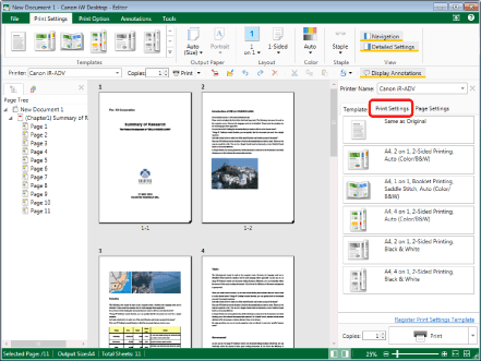 When using the Print Mode, you can also display the Details Window by clicking  (Detailed Settings) on the ribbon.
