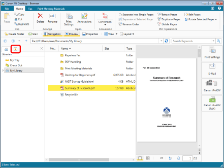 This operation can also be performed with the tool buttons on the toolbar. If tool buttons are not displayed on the toolbar of Desktop Browser, see the following to display them.