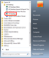 For Windows 10, select the [Start] menu > [All apps] > [Canon iW] > [iW Desktop]. Desktop Browser starts.