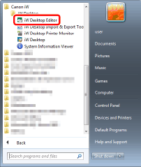 For Windows 10, select the [Start] menu > [All apps] > [Canon iW] > [iW Desktop Editor]. Desktop Editor starts.